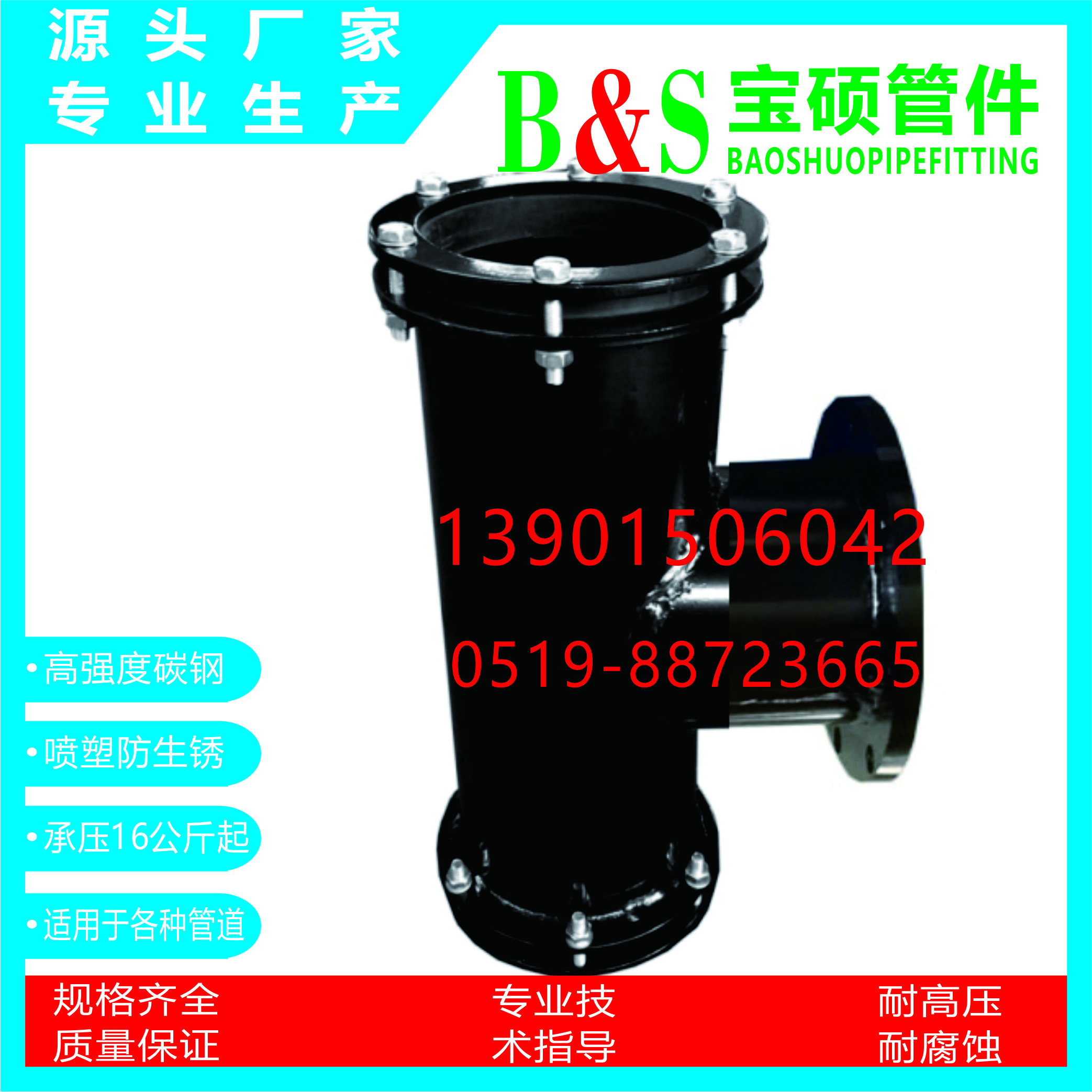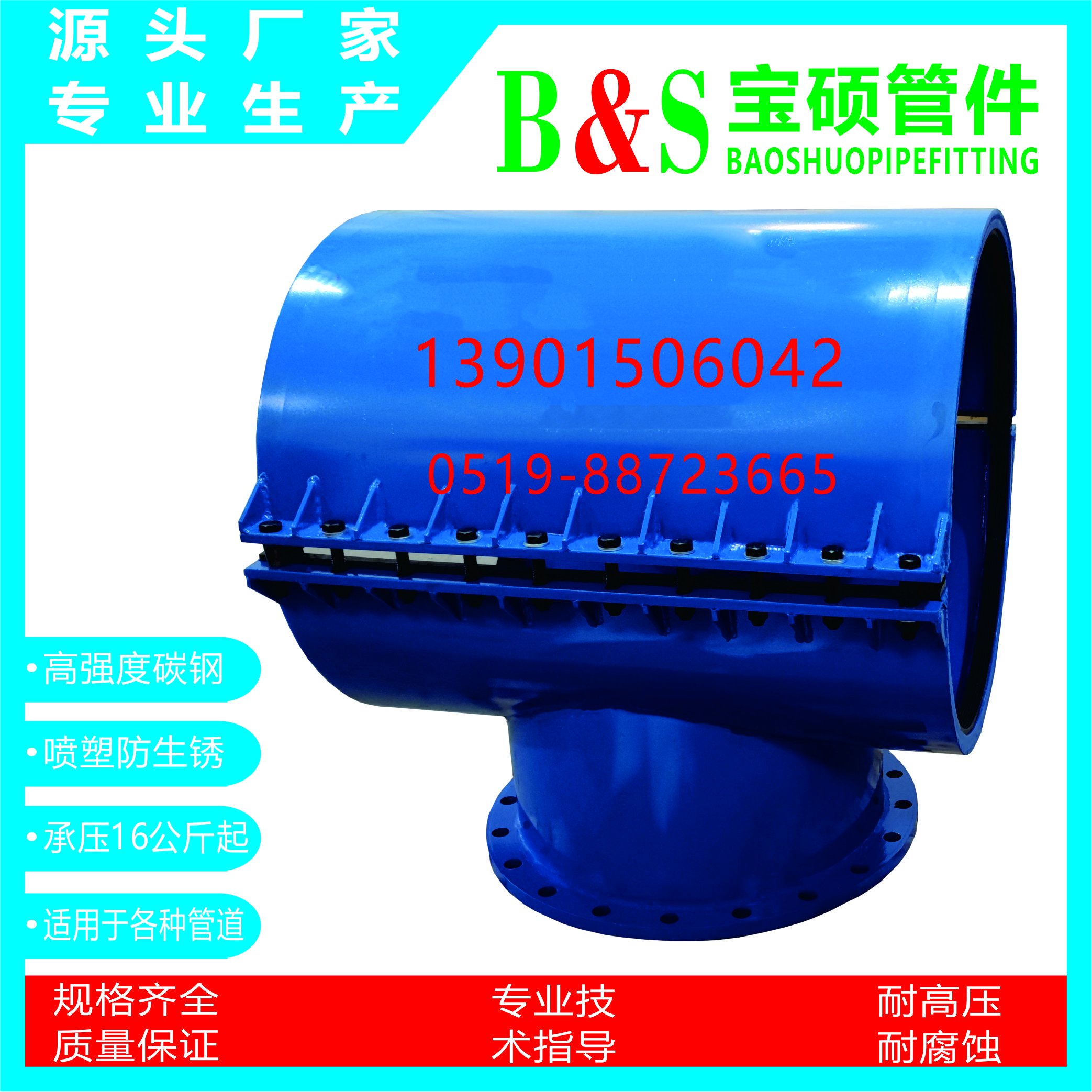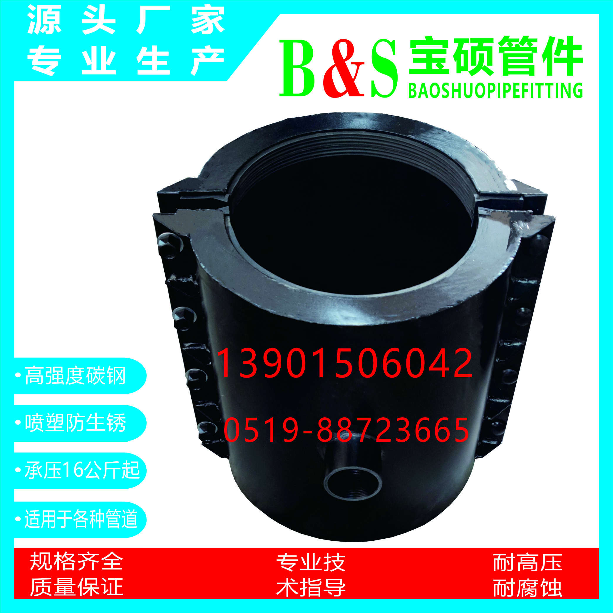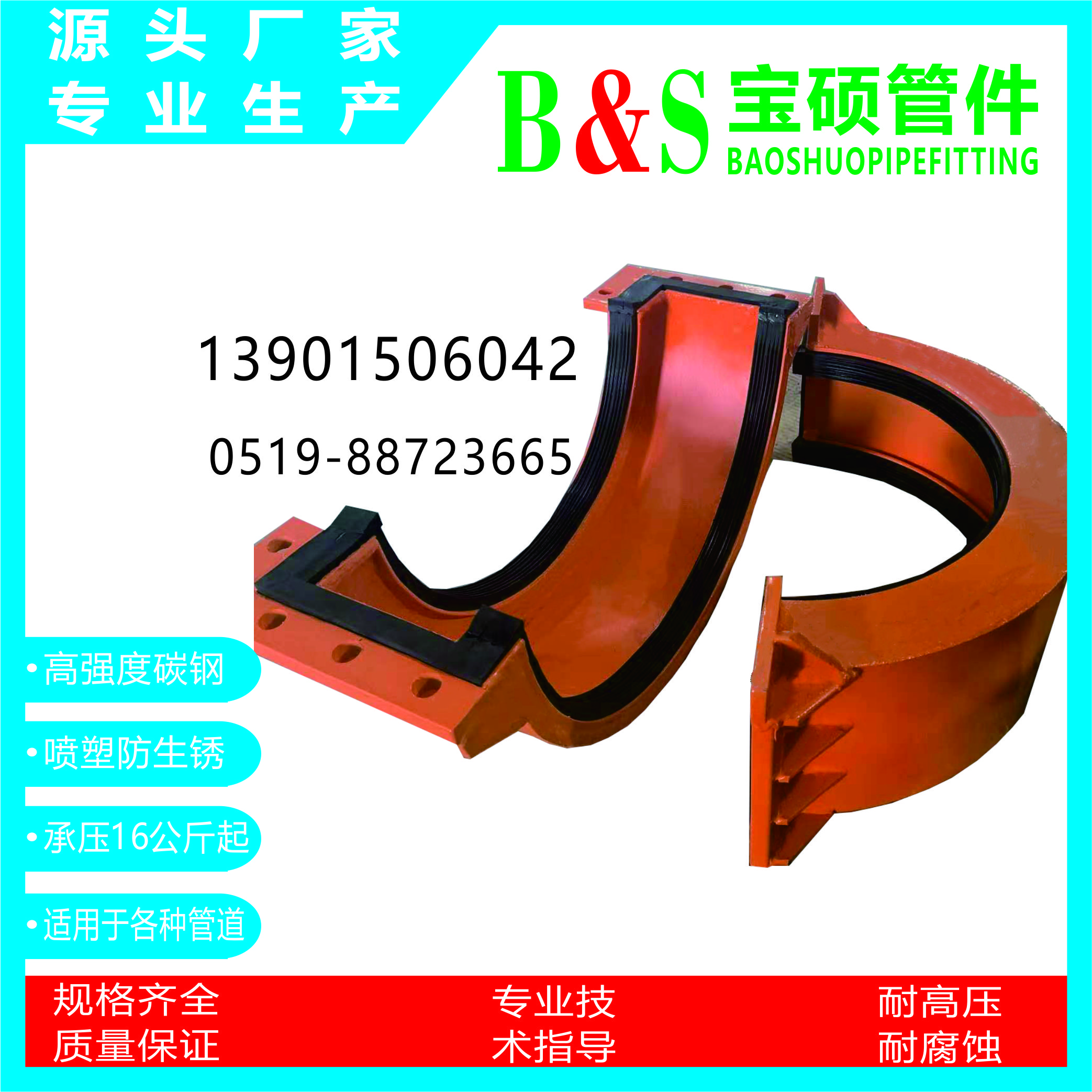 常州市宝硕管件有限公司【常州市宝硕宏图管道配件有限公司】是生产各种管道哈夫节,三通哈夫节,弯头哈夫节,异径等管件哈夫节;高压哈夫节,耐油哈夫节,耐高温哈夫节,耐腐蚀哈夫节,碳钢哈夫节,304.316.316L不锈钢哈夫节。马鞍三通管卡,四通管卡;哈夫三通管卡,四通管卡;承插钢塑管件;柔性快速接口.........